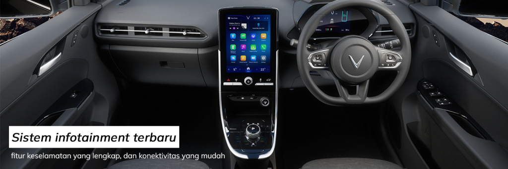 Layar sentuh besar dengan sistem navigasi dan koneksi smartphone.